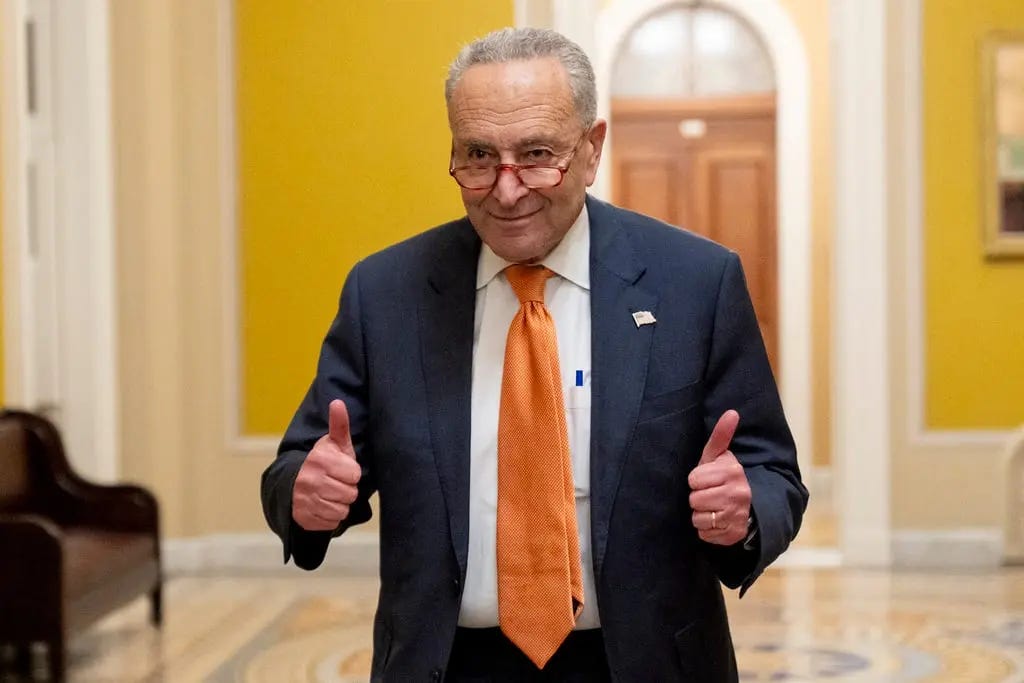 Senator Booker's unprecedented speech drew widespread praise from fellow Democrats and a surge of interest among supporters while many Republicans watched in silence. Throughout Tuesday, Democratic senators paraded into the chamber to assist Booker and applaud his determination. Each colleague who spoke offered effusive words about the importance of his stand. "I thank the gentleman for his fortitude, his strength, and the crystalline brilliance with which he has shown the American people the huge dangers that face them with this Trump-[DOGE]-Musk administration," Senate Minority Leader Schumer lauded in one colloquy, inventing a moniker for the Trump–Department of Government Efficiency (Musk) regime. Others echoed that sentiment. "Your strength, your fortitude, your clarity… has been nothing short of amazing," Schumer told Booker, calling the moment proof that "the disastrous actions of this administration… You have brought forth with such clarity" for the public. Democratic Senators Amy Klobuchar, Dick Durbin, Mazie Hirono, Elizabeth Warren, and many more took turns not only asking policy questions but commending Booker's perseverance. In a light-hearted exchange, Sen. Klobuchar once asked Booker to name his favorite New Jersey musician (after she had quoted Bob Dylan); Booker laughed and demurred rather than risk offending any Jersey icons. Such moments of levity were rare but memorable. When Schumer joked about their shared football fandom – both men root for the New York Giants – Booker quipped that the Giants "play in New Jersey" and insisted, "I hold the floor – I do not yield," drawing laughter in the chamber. The good-natured camaraderie underscored the sense of shared purpose among Democrats rallying around Booker's stand.